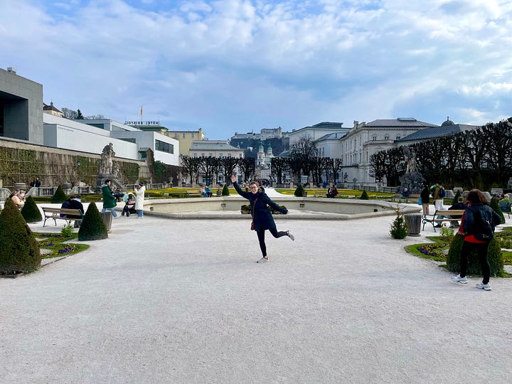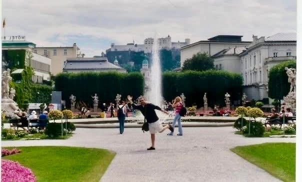 We walked through Mirabell Gardens. I found a photo of him there. I stood in the same spot and tried to recreate it. Same place, completely different life.